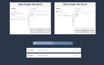 بالإضافة إلى ذلك، يدعم الملحق وضع التصفح المتخفي من خلال السماح للمستخدمين بتبديل الميزة في إعدادات الملحق. تضمن هذه الوظيفة الخصوصية أثناء إجراء البحث. كما يستخدم الأداة أذونات التخزين للاحتفاظ بإدخال المستخدم، مما يجعل من السهل استئناف البحث حتى بعد إغلاق النافذة المنبثقة. بشكل عام، يعد فتح Google :site البحث أداة عملية للمستخدمين المتكررين لـ Google الذين يرغبون في تبسيط عملية البحث الخاصة بهم.